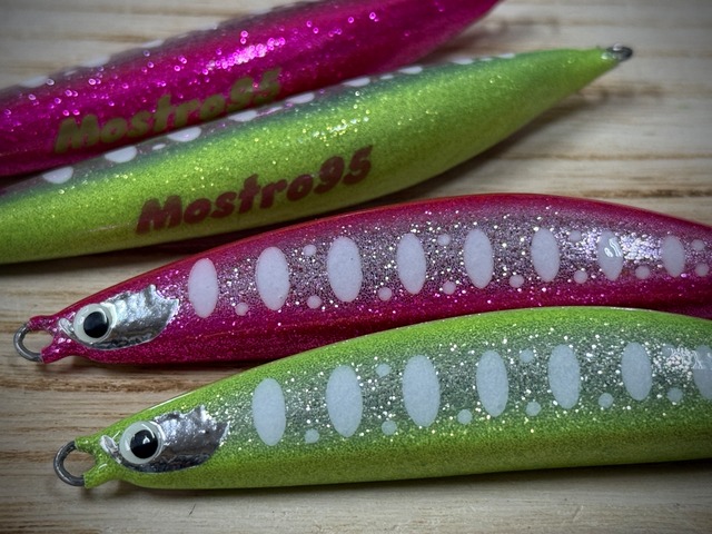 【海サクラ・ヒラメに実績大の当店オリカラ!】 発売以来、海サクラにヒラメと数々の実績を叩き出しているGLXカラー! グロー仕様のパーマークがちょうど良いアピールをしてくれます。 更に全身に散りばめられた銀粉フレークが乱反射することによる抜群のアピール! 数量限定のため、お早めにGETして下さい! 【イタリア語で『怪物・モンスター』と言う意味合い】 しっかり振り抜く事でブレる事なく綺麗な飛行姿勢で飛んでいき、飛距離は平均90m! ウォブリングしながら泳ぐ事に加え、フォール時にはバックスライドしながらの水平フォールでターゲットを魅了する硬質発泡ウレタン製のジグミノーです。 Type:Sinking Length:95mm Weight:35±2g