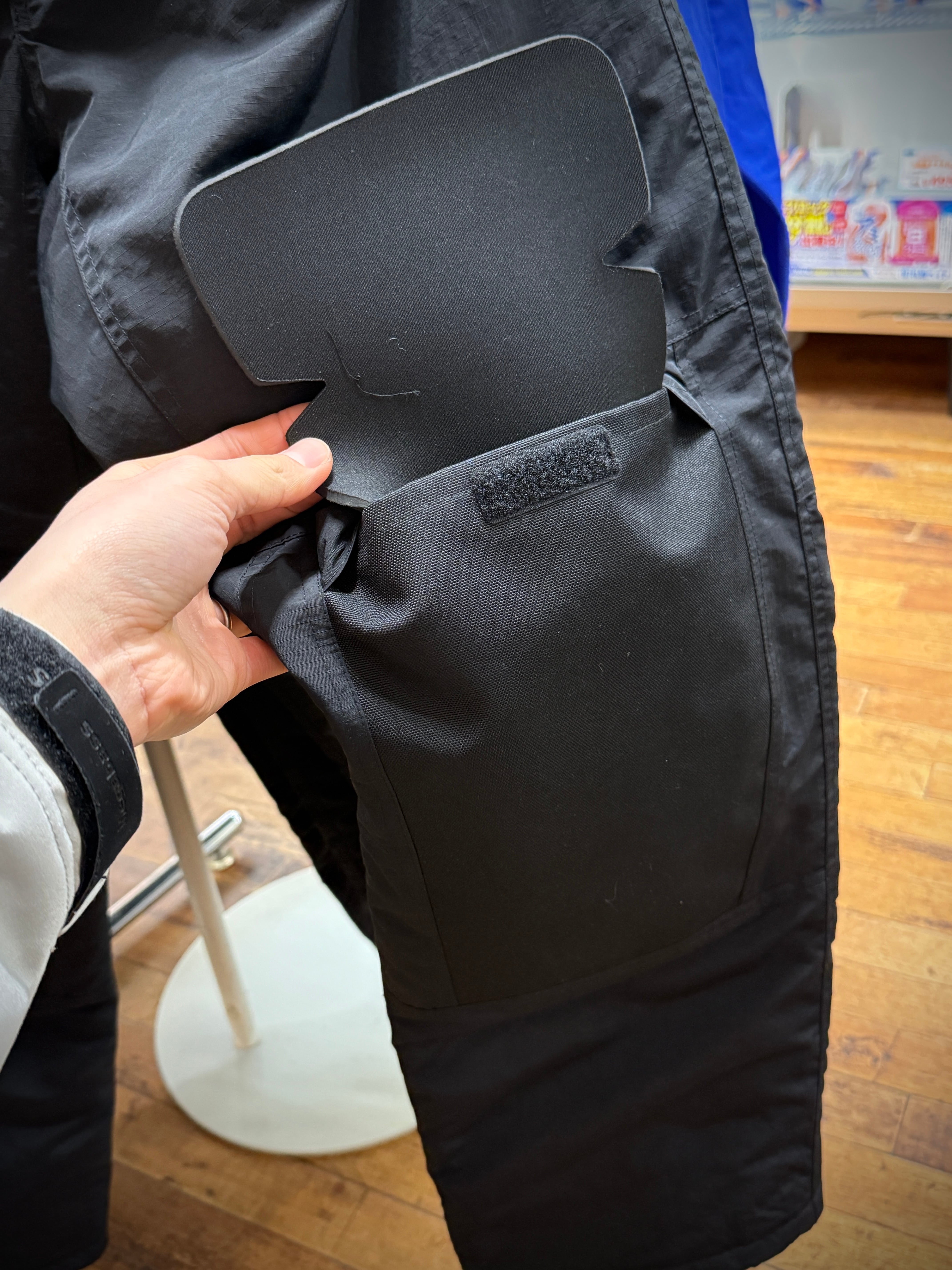 ニーガードパンツのアイデンティティーとなる取り外し可能な膝パットはそのままに中綿仕様に。