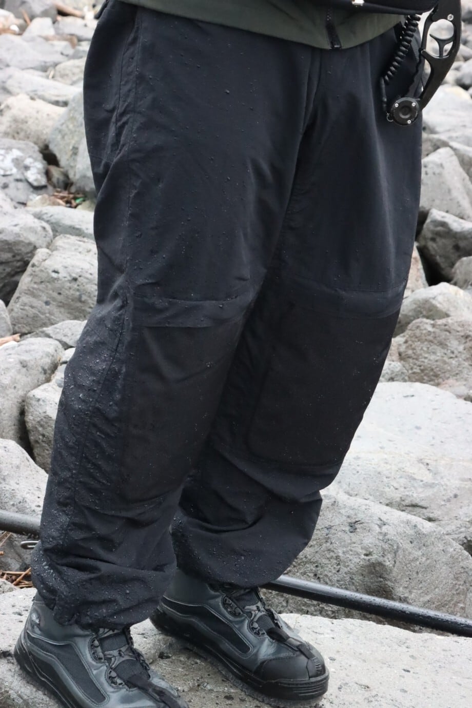 また、ニーガードパンツ同様にポケットは5ポケット仕様、カラビナやリリーサー類を取り付け可能なループも豊富で、アングラーのフィールドワークをサポートします。